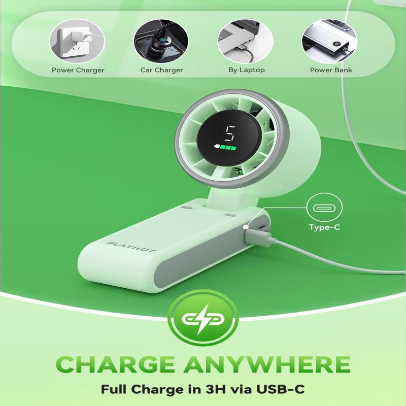 Powered by a 5000mAh rechargeable battery, this portable fan offers long-lasting performance (up to 20 hours depending on speed setting). Its lightweight and ergonomic design makes it easy to carry in your bag, making it ideal for hot weather, commuting, camping, or everyday cooling needs. 🔋
