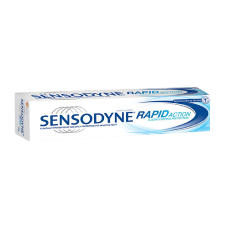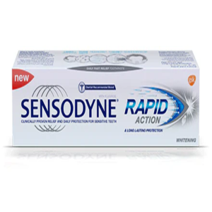 Sensodyne Rapid Action Protection Toothpaste 75ml is a specially formulated toothpaste designed for people with sensitive teeth, providing fast relief from sensitivity pain while protecting your teeth during everyday brushing. Its advanced formula works quickly to create a protective barrier over exposed dentin, helping block the triggers that cause sensitivity to hot, cold, or sweet foods. (sensodyne.com)