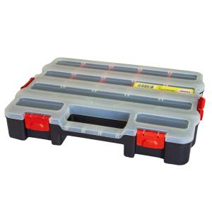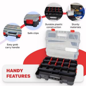 Made from rugged plastic construction, the toolbox offers long‑lasting performance and resistance to everyday wear. Its compact and lightweight design makes it convenient to carry to job sites, workshops, garages, or for DIY projects at home. Transparent compartment lids allow quick viewing of contents so you can find what you need without opening every compartment.