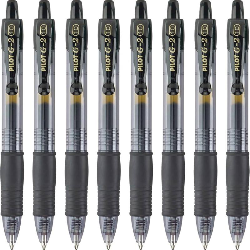 Pilot G2 Premium Black Gel Pens Fine Point 8-Pack is a set of 8 high-quality retractable gel pens designed for smooth, precise writing. Each pen features a fine point tip for clean, consistent lines and uses premium gel ink that flows effortlessly on paper.
