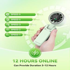Portable 5-Speed Rechargeable Turbo Handheld Fan – 5000mAh, 20H Battery (Green) is a powerful and compact personal cooling fan designed for travel, outdoor activities, office, and home use. It features 5 adjustable speed levels to provide the perfect airflow, from gentle breeze to strong turbo wind. 🌬️